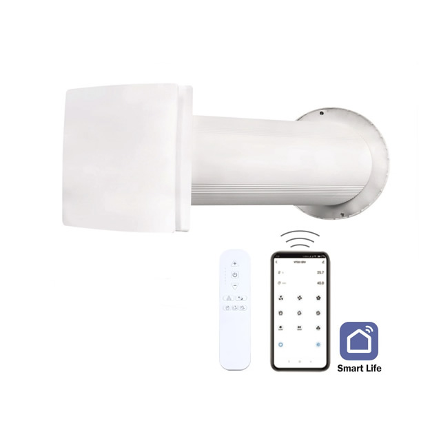 Принцип работы этого устройства заключается в работе реверсивного вентилятора, за счет которого и происходит нагнетание воздуха в помещение, а также его вытяжка.